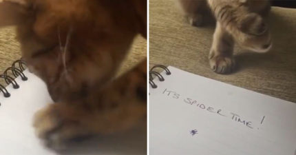 萌貓飛撲「2D蜘蛛」貓掌狂拍 超興奮「檢查肉球」傻眼:怎麼沒東西?
