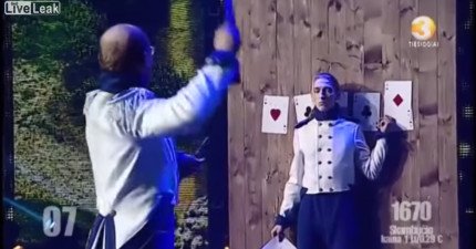 飛刀表演者狀況不佳,飛向助理的第二刀讓觀眾全部驚心尖叫!