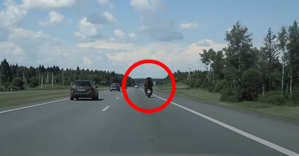 他們在俄羅斯路上發現一個不尋常的機車騎士背影,上前一看對方轉頭差點沒把他們嚇死!