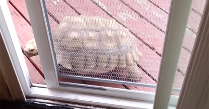 我原以為這隻烏龜被關在門外進不來,沒想到牠立刻證明烏龜比多數寵物都還聰明!