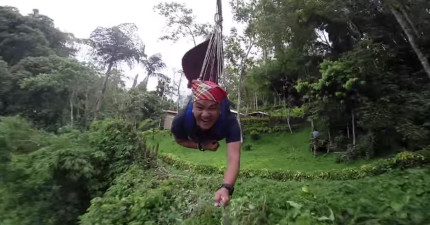 這傢伙來到叢林溜鋼索看起來一點都不恐怖…等等,0:15這是呃啊啊啊啊!