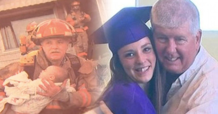 17年後,當年從火場中把只是嬰兒的她救出來的61歲男子來參加她的畢業典禮。