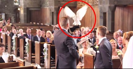 當新郎新娘要交換戒指時,這隻雪白貓頭鷹就從魔法世界飛來見證愛情了!