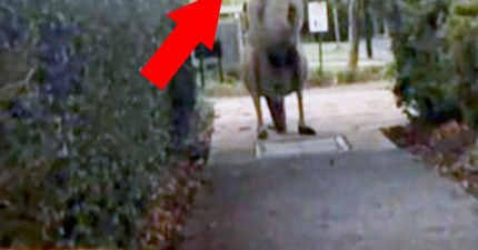 一名澳洲女士在溜狗時,轉彎迎面碰上了這位200公分高渾身肌肉的鄰居。