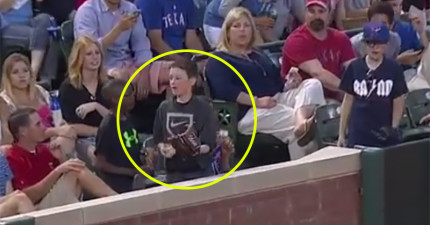 影/小男孩在棒球場上幸運接到球 帥氣轉身對3位辣妹做出「所有男人都會懂的事」