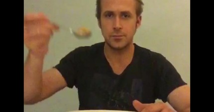這個情聖雷恩·葛斯林吃玉米片的影片因為一個悲傷的原因在網路上竄紅。