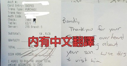 在聽到女服務生說與兒子無法相見後,這位食客留下讓她泣不成聲的小費單。
