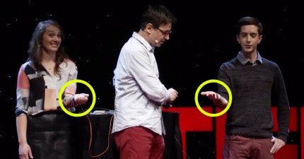 左邊這位女子,即將用她的腦波去控制右邊男性的手。