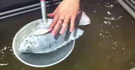所有人都以為吳郭魚被瞬間冷凍後就硬梆梆死了,直到在把牠放入水中等待30秒…