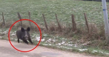 這對情侶漫步鄉間忽然被野豬全速迎面攻擊,好在有幾位「矮小的」守護天使及時降臨!