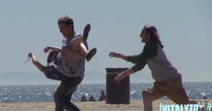 這個男生惡作劇在路上看到別人的女朋友就直接抱起來,結果男友的反應…炸掉!