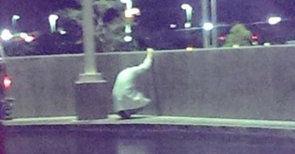 一場車禍撞壞消防栓讓水柱衝天,這個路過的男人完全沒放過這個表演的大好機會!