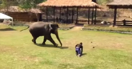 大象飼養員突然倒地,接著大象衝過來的行為會讓你超級感動!
