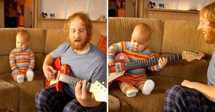 2歲男嬰自信接過爸爸吉他 「靈活小手炫技」連莫札特也跪了