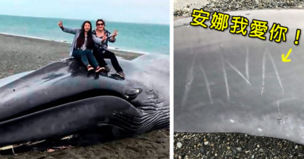 20公尺巨大藍鯨擱淺,民眾趕現場「爽坐屍體燦爛合照」還有人「趁機刻字告白」!引爆全網公憤