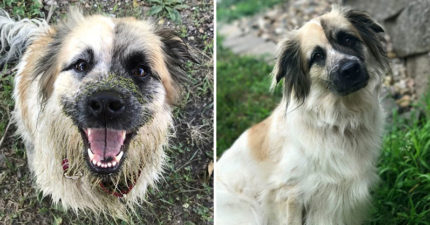 看過媽媽這麼做,菩薩小狗看到路上小蟲都會溫柔叼起放到旁邊草叢裡!(影片)