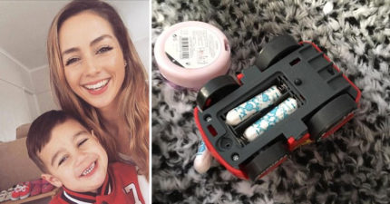 3歲兒子為了玩具車大喊:「媽咪,我找到電池了!」但媽媽看見「真相」之後卻笑到不行!