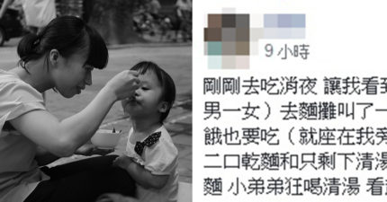 媽點麵狂嗑「留剩湯給兒女」 他不捨送餐弟弟露笑臉:第一次吃好飽