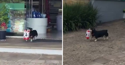 精明汪汪「自己血拼買飯飯」 叼飼料屁顛回家:好開勳~