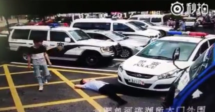 男子想詐騙「假裝被撞」,一發現原來是警車就忽然變得超爆笑…