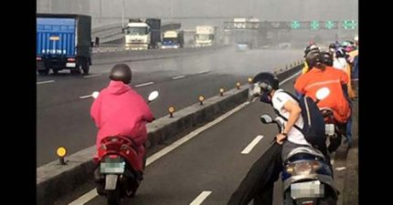 新北市出現「乾濕分離邊界」,讓騎士能先換雨衣再衝雨陣!