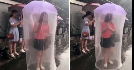 台女用自己DIY「雨傘 + 蚊帳」360度防護照被網友狂笑「移動保險套」!紅到國外變頭條!