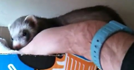 鼬媽媽跑過來「咬男子手指」往後拉,發現她是太開心想要「介紹孫子給爺爺看」! (影片)