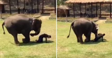 影/照護員被惡霸推倒 呆萌小象「狂衝轉圈保護」:把拔你沒事吧?