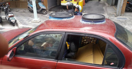 等紅燈時看到阿伯車頂上有「神祕桶蓋」,阿伯超狂回答讓網友驚:「改造神人!」