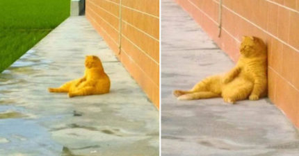 貓咪受夠人生整個崩潰坐下靠牆,抓到有人偷拍「表情超精采」。