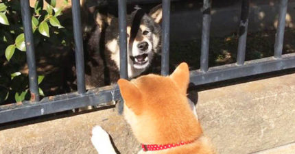 小萌柴柴散步時看到小黑狗想要「交朋友」,最後爆笑「悲劇收場」…