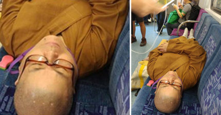 拍到一名和尚在搭車時橫霸4座位,網友:「出家人慈悲,就坐上去吧…」