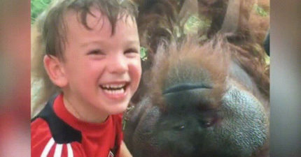 紅毛猩猩超會!「堅定又溫柔」的眼神以為看錯,男孩招架不住親一下看到奇蹟!