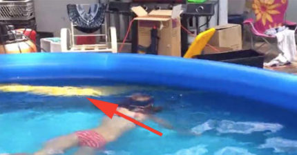 這是小女孩在很開心的游泳影片,但當你發現旁邊那一條不是浮板玩具時「你可能會被嚇到立刻逃回FB」!