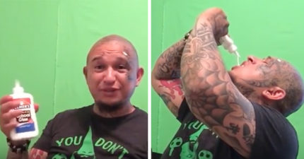 這名瘋男子為了想讓大家看他的影片決定瘋狂的「灌下一公升的白膠」!我想他現在應該已經死了吧…