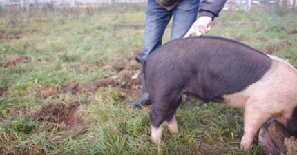 神人網友找到了豬身上的「尾巴開關」,當他順著豬背摸下去時…注意看小豬的尾巴!