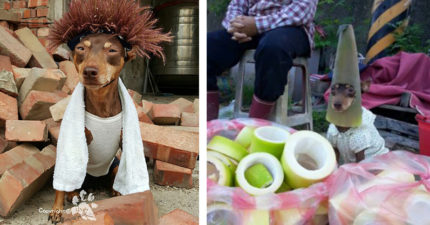 這隻可愛小狗狗因為太會打扮,還假裝成在幫奶奶賣竹筍,結果一不小心就出名了啦!