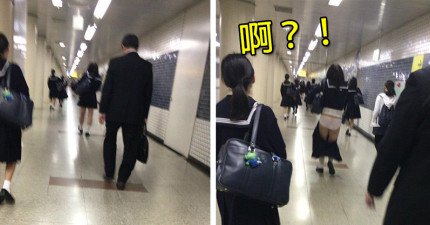 這名網友拍下了女學生走路走一半裙子掉落的畫面,但後續的發展仔細看會讓人笑垮!