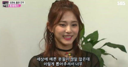 周子瑜在節目上分享當選「世界百大美女」高名次的感想,害羞到整個臉紅透!