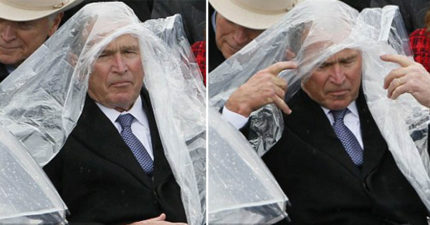 「就職典禮超大亮點」前總統布希跟雨衣PK超痛苦,最後終於獲勝露出燦笑超迷人!