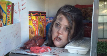 媽媽扮成冰箱裡的「冷凍死人頭」已經嚇死上萬人,冰箱門關起來讓我笑噴了!