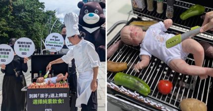 中秋節將近!為提倡純素飲食 動保團體「火烤嬰兒」籲別送動物上烤架
