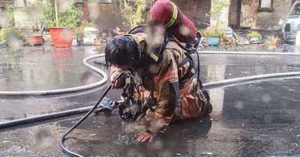 嘉義嚴重火警!消防員「跪地灌水」再衝火場救援 網淚讚:真正的英雄