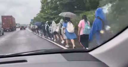 國道「學生淋雨排隊」走路肩北上!駕駛全看傻 警方回應曝真相