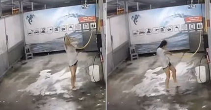 把洗車場當自己家?熱褲妹「濕身洗澡」 影片瘋傳網看傻