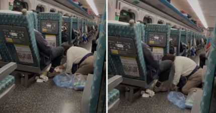 醉男吐滿地!清潔阿姨「雙膝下跪擦拭」惹乘客心疼 高鐵回應了