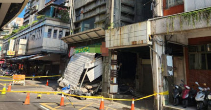 基隆房屋坍塌!「2樓直墜成1樓」鐵門變形噴出 大批警消緊急封鎖現場