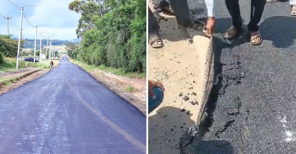 剛鋪完馬路…民眾一掀竟變「瀝青地毯」氣炸 承包商:這是德國技術