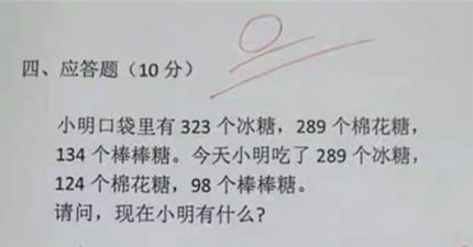 「吃糖數學題」小學生答4字 老師給0分!網卻大讚:絕對當醫生