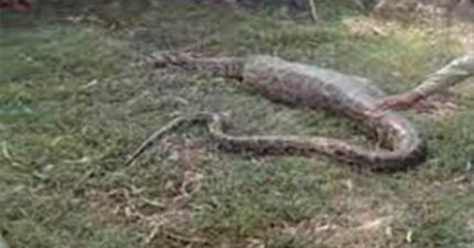 影/貪心吞一整隻牛!蟒蛇「肚皮撐到極限」下場慘了